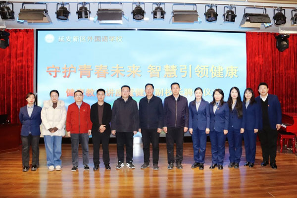 為深入貫徹落實《陜西省中小學幼兒園健康副校長聘任與管理辦法》文件精神,充分發揮健康副校長在促進中小學幼兒園衛生健康工作中的積極作用,持續提升兒童青少年的健康水平,全面助推兒童友好醫院建設,12月18日下午,延安新區外國語學校隆重舉行“守護青春未來 智慧引領健康——健康教育講座暨健康副校長聘任儀式”。學校校長張安平,副校長高靜、陳小艷,辦公室主任陳蓉出席會議。延安市人民醫院相關專家及師生代表300余人參會,活動由學校副校長高靜主持。